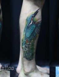 腿部潮流时尚的彩色小鸟纹身图片