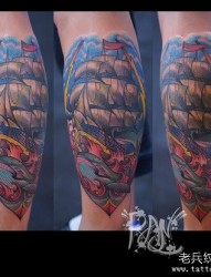 腿部时尚经典的一幅帆船纹身图片