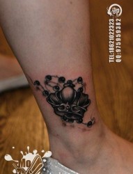 小腿时尚潮流的黑白皇冠纹身图片