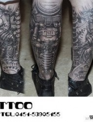 男生腿部很酷经典的机械腿纹身图片