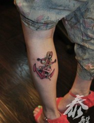 时尚经典的女人腿部船锚纹身图片