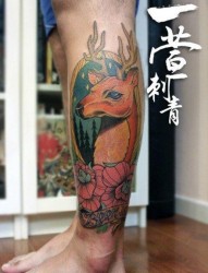 男生腿部潮流很酷的鹿纹身图片