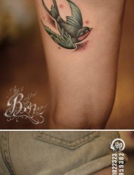 女人腿部时尚潮流的彩色小鸟纹身图片