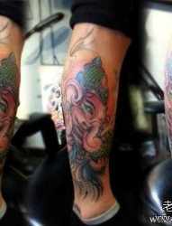 男人腿部潮流时尚的图腾皇冠纹身图片