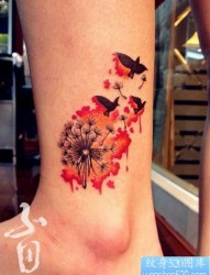 腿部时尚潮流的蒲公英与小鸟纹身图片