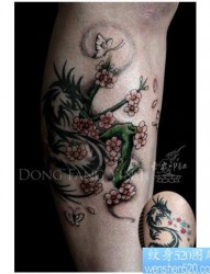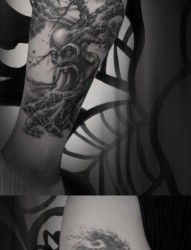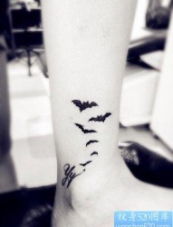 腿部潮流时尚的一幅图腾蝙蝠纹身图片