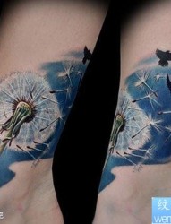 小腿上一幅彩色骷髅蝴蝶纹身图片
