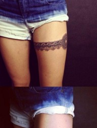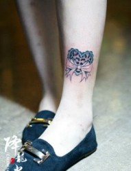 女人腿部小巧时尚的豹纹爱心纹身图片