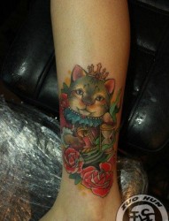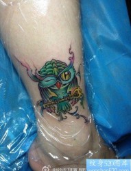 腿部可爱很萌的一幅猫头鹰纹身图片