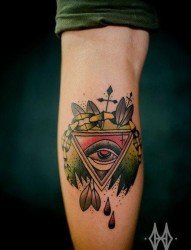腿部潮流时尚的一幅上帝之眼纹身图片