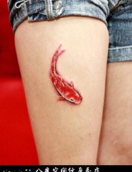 女人腿部小巧时尚的写意小鲤鱼纹身图片