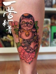 腿部时尚潮流的猫咪套娃纹身图片