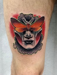 一幅大腿上的欧美人物纹身图片