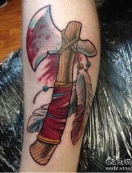 腿部潮流时尚的斧头纹身图片