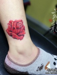 女人腿部好看精美的红玫瑰纹身图片