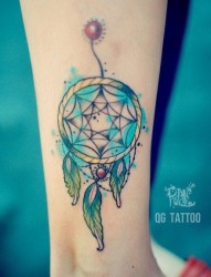 美女腿部时尚潮流的捕梦网纹身图片