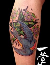 女人腿部时尚潮流的燕子纹身图片
