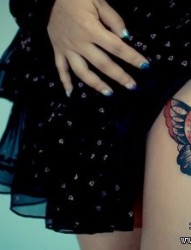美女腿部好看经典的蝴蝶纹身图片