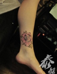 腿部时尚潮流的沙漏玫瑰纹身图片