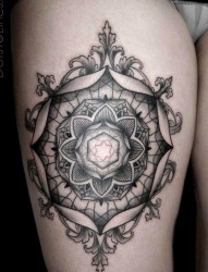 欣赏大腿上一幅几何纹身图片