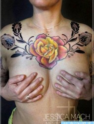 美女胸部上一幅漂亮潮流玫瑰纹身图片