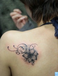 一幅背部百合花纹身图片由纹身520图库推荐