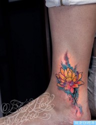 一幅脚踝莲花纹身图片有纹身520图库推荐