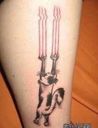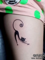 最好的文身店推荐一幅腿部小猫咪文身图片