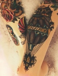 纹身520图库提供一幅腿部唯美的热气球纹身