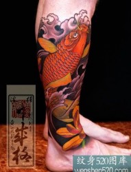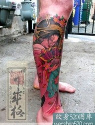 腿上彩色的日本艺妓纹身图案作品欣赏