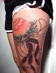 腿部水母图案纹身