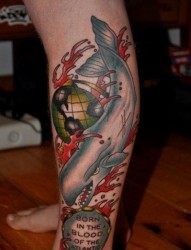 凶恶鲨鱼游走在小腿间刺青图片