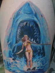 鲨鱼蓝色口中的性感美女纹身