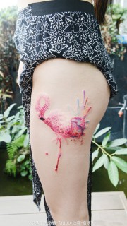 在大腿纹上水彩火烈鸟是多么的惊艳
