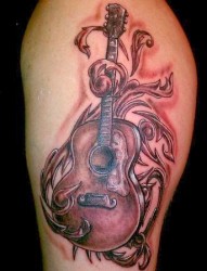 大腿上快乐的吉他纹身