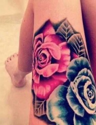 腿部妖艳的玫瑰纹身