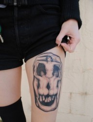 女性腿部肖像骷髅刺青