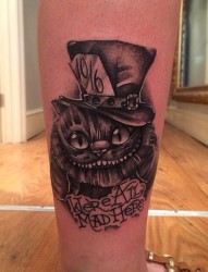 男人小腿上的黑白卡通刺青图案