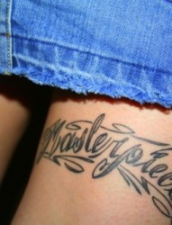 女人腿部字符刺青