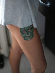 女性腿部彩色骷髅刺青