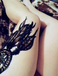 女人大腿龙刺青