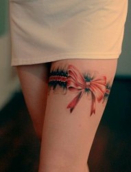 性感女孩腿部红色蝴蝶结可爱刺青