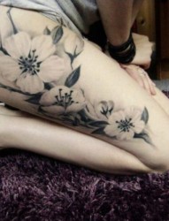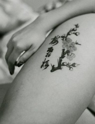 女孩大腿上的梅花刺青
