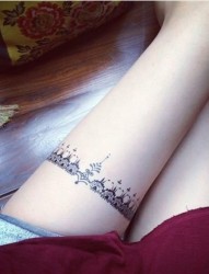 个性女孩腿部蕾丝性感刺青