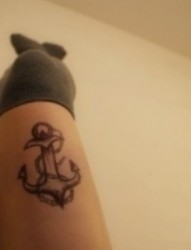 女孩腿部黑白锚欧美个性刺青