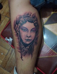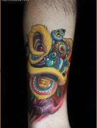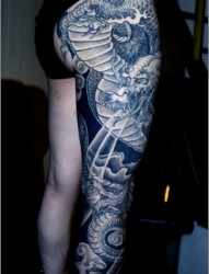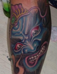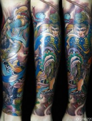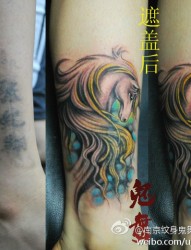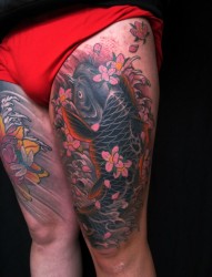 男士超个性大腿部位彩色黑鲤鱼纹身图案