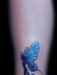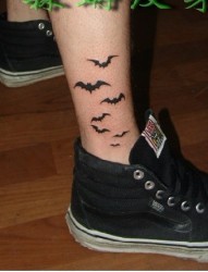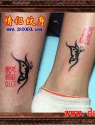 男女小腿部飞舞的黑色蝴蝶情侣纹身图案