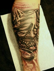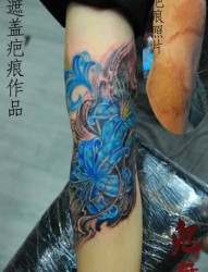 男士手臂伤疤遮盖彩色宝马纹身图案
