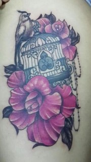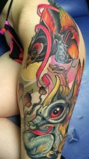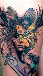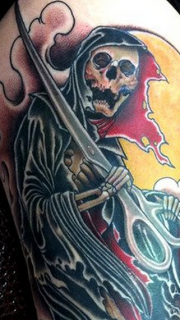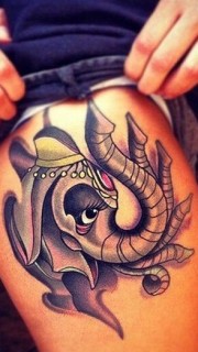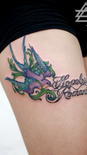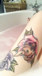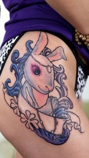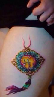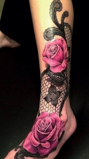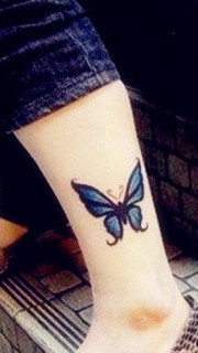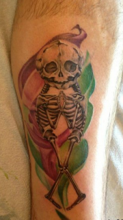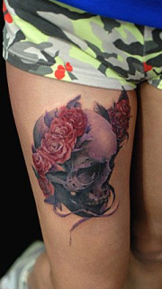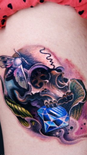 女生腿部超帅经典的骷髅与钻石纹身图案