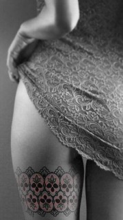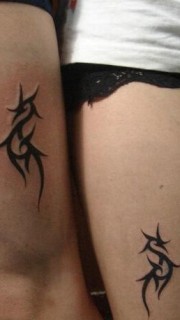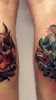腿部漂亮潮流的情侣欧美骷髅纹身图案